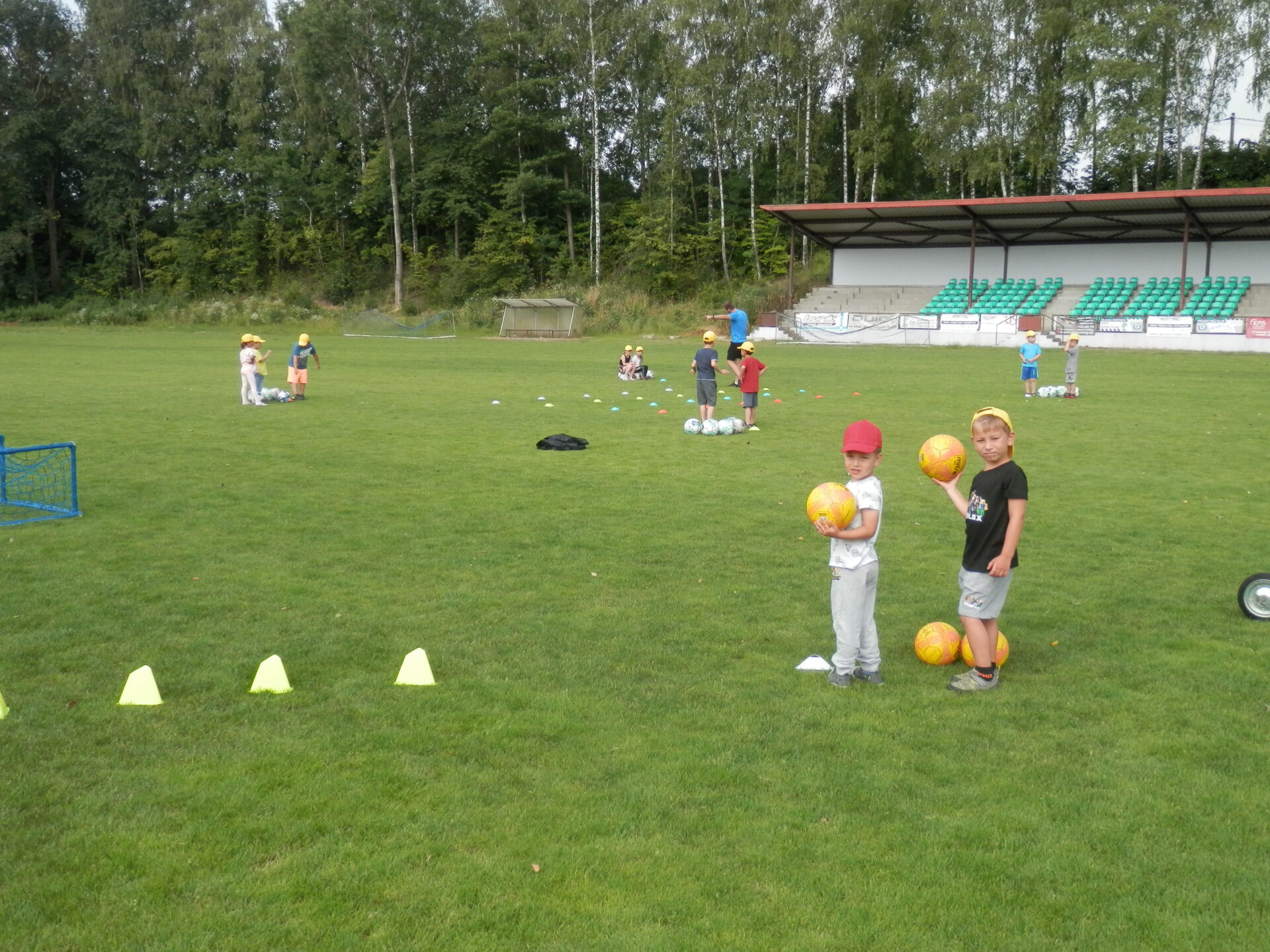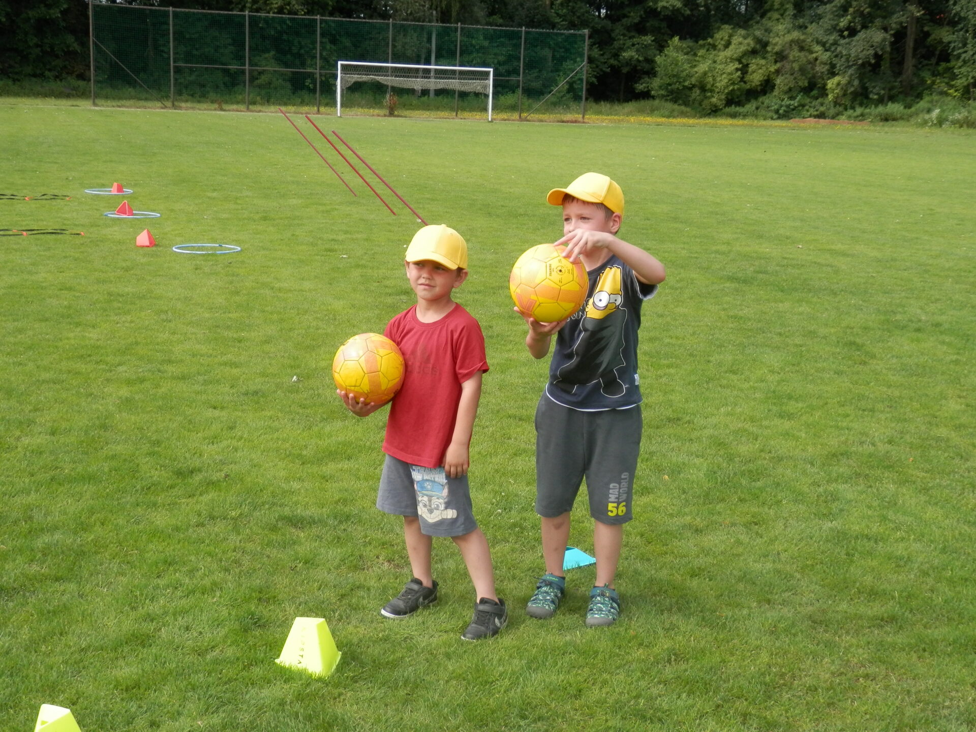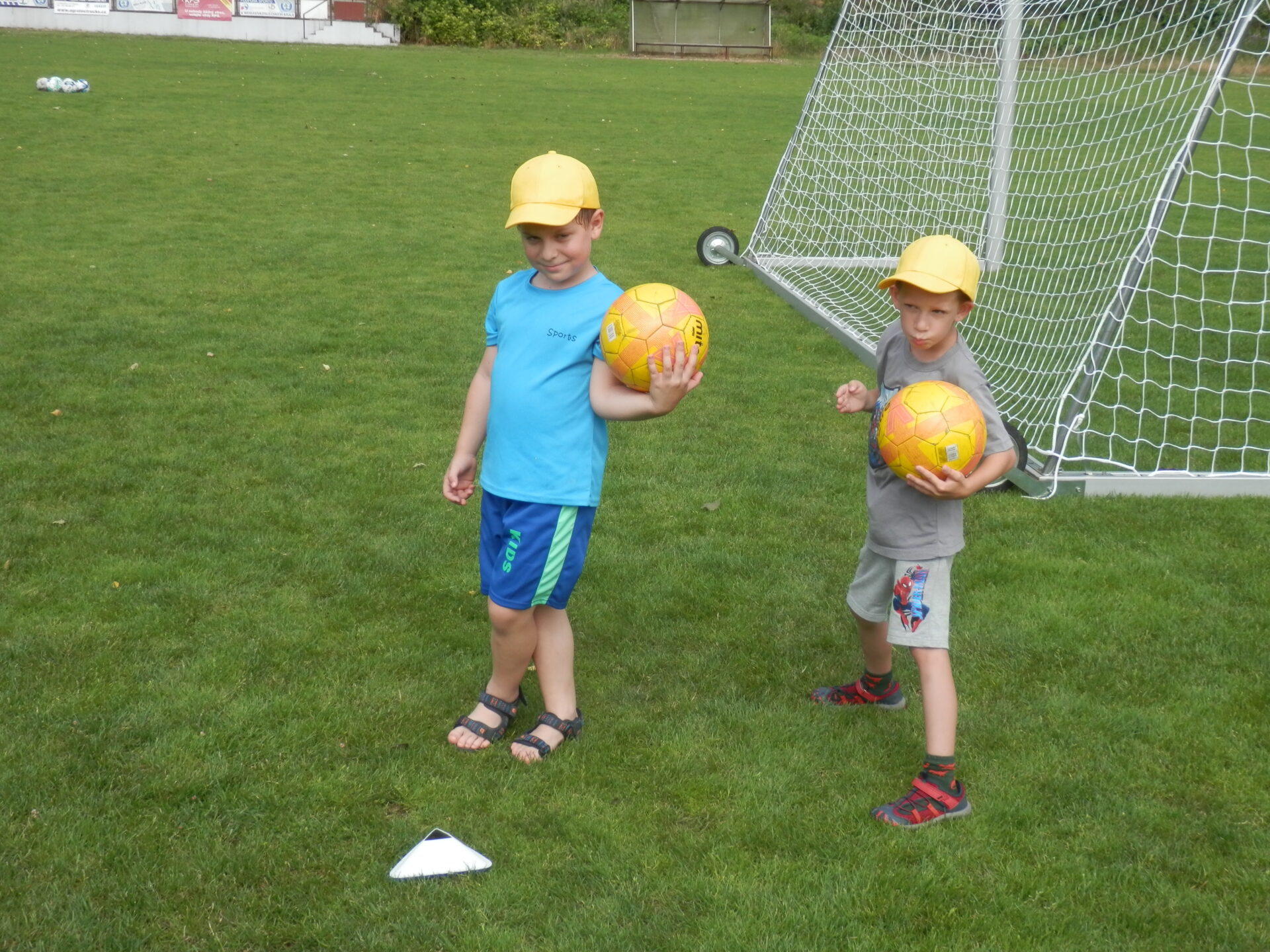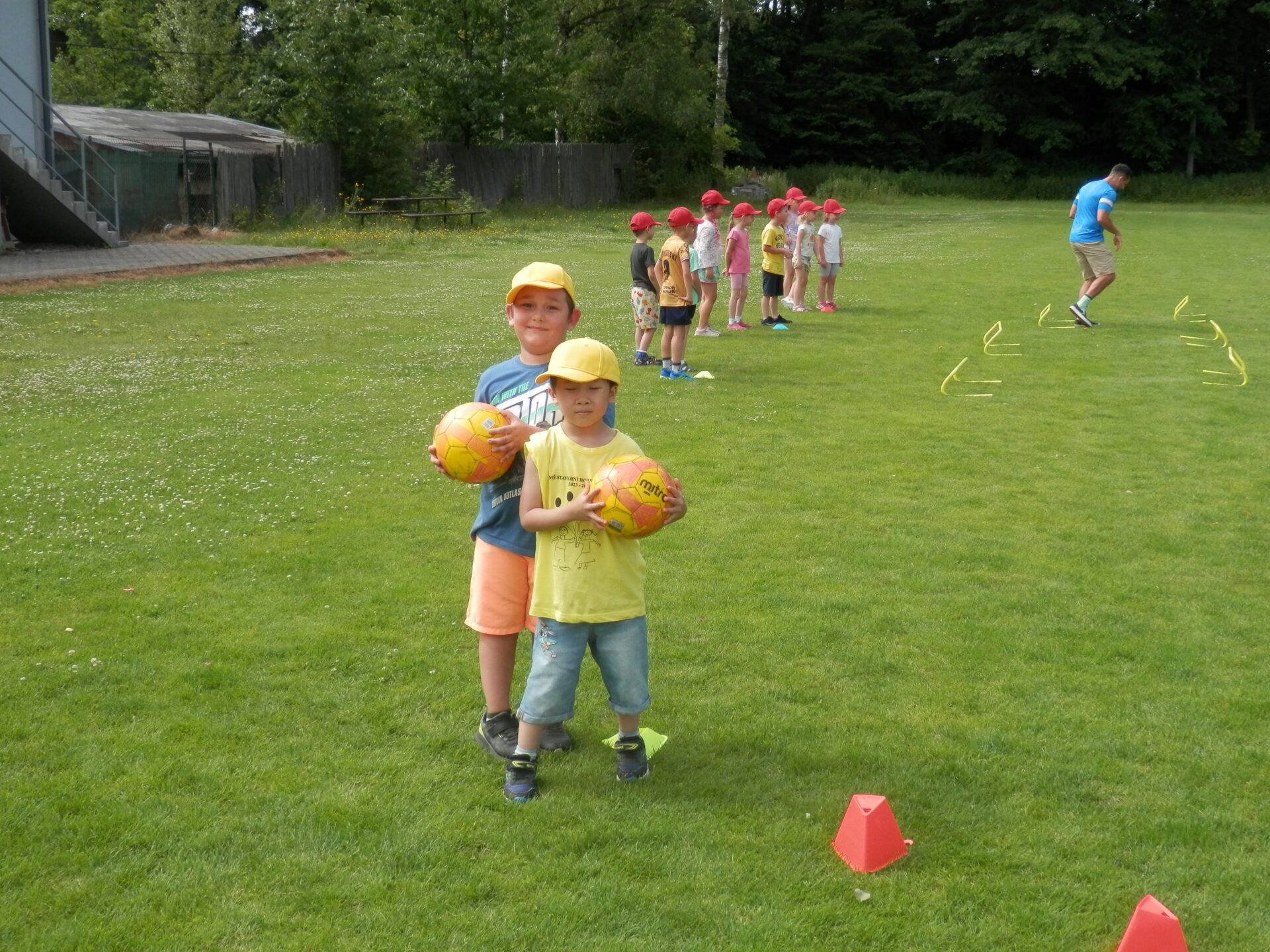 Malí fotbalisti – žlutý a červený balónek