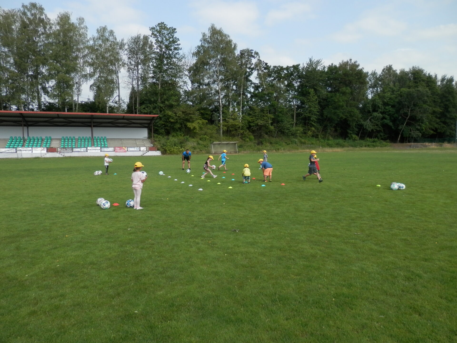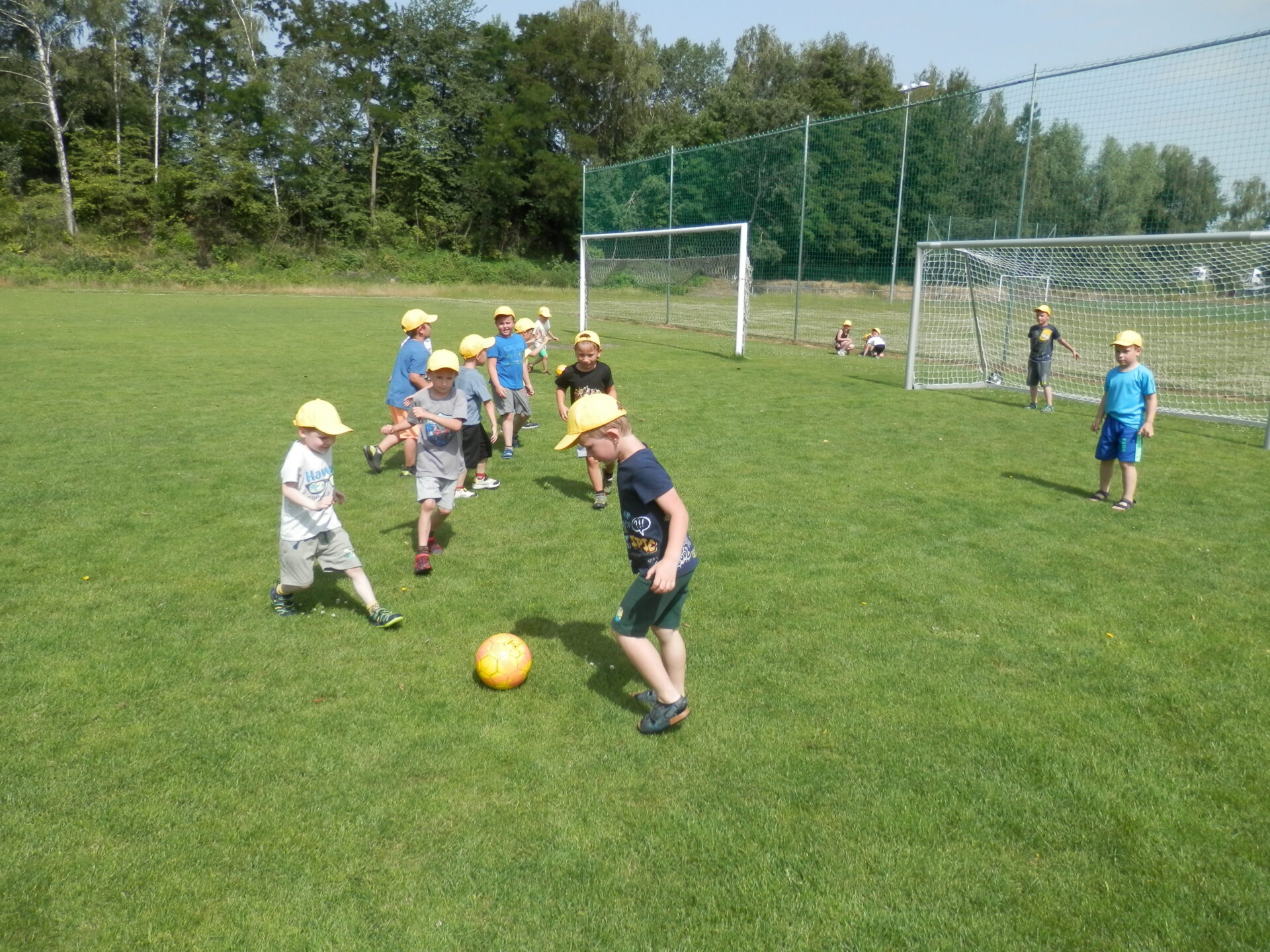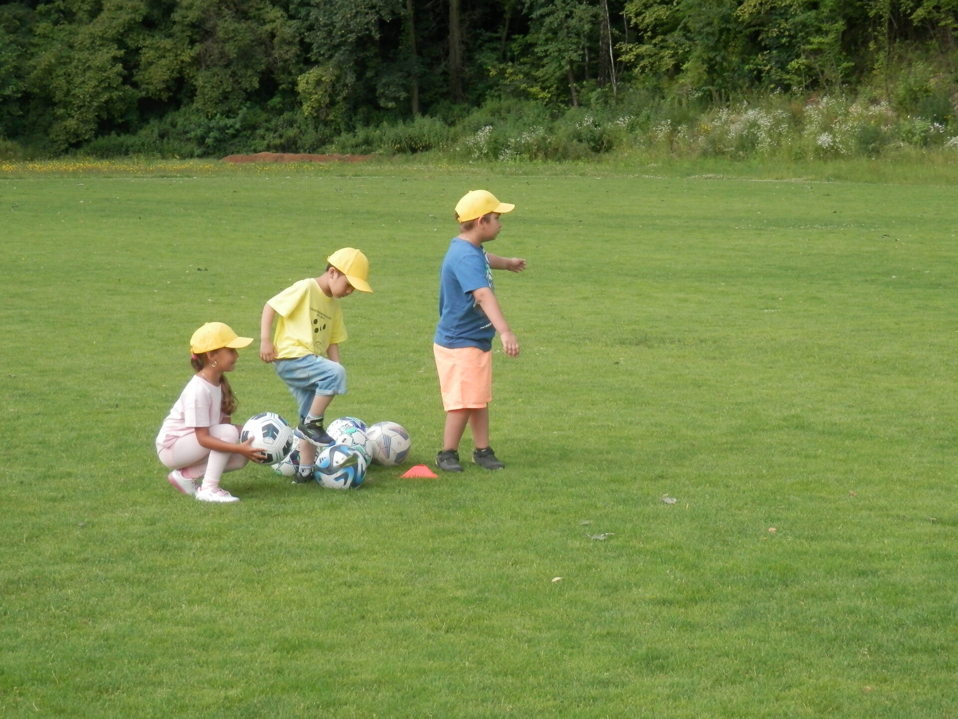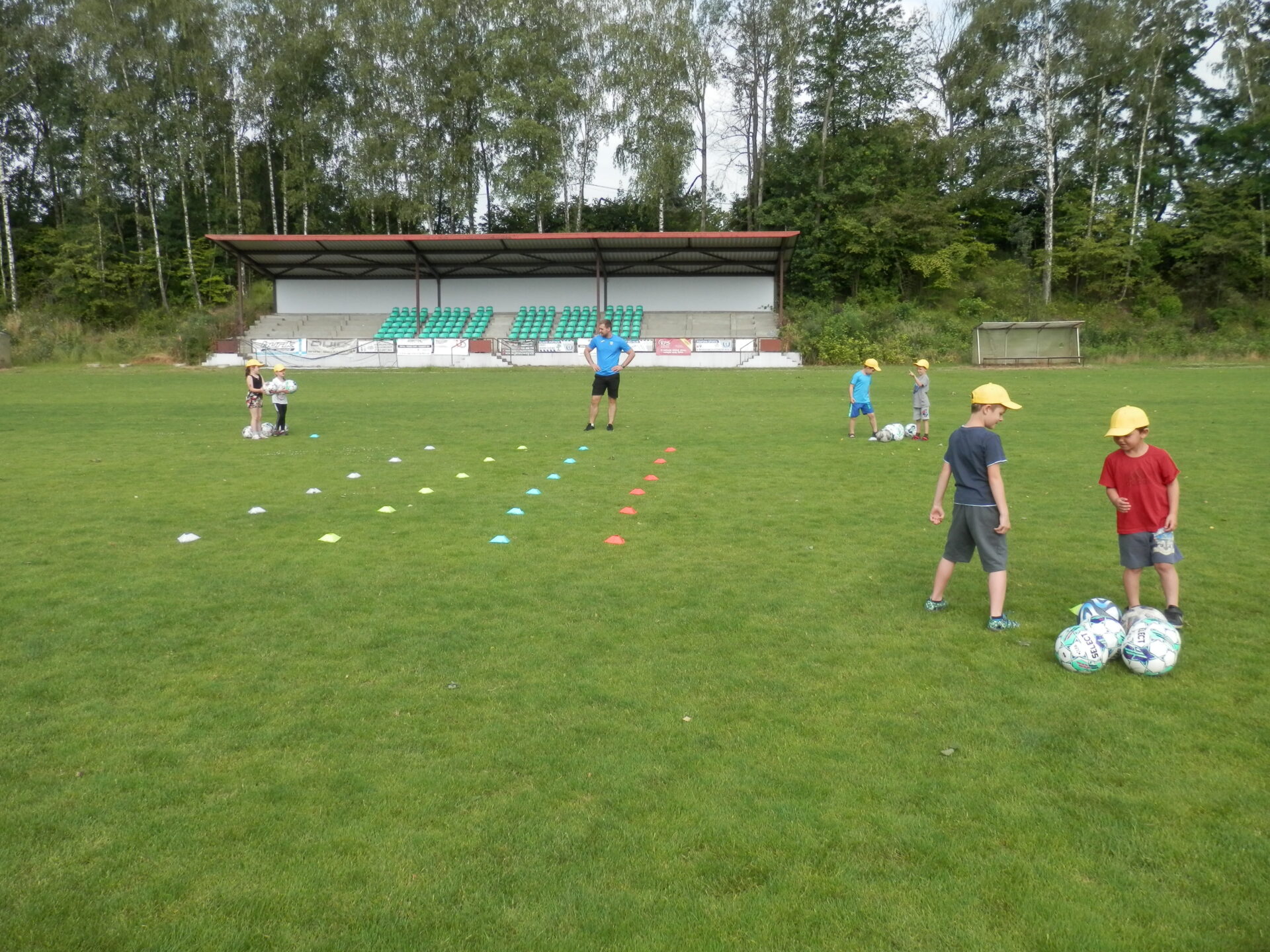 Malí fotbalisti – žlutý a červený balónek