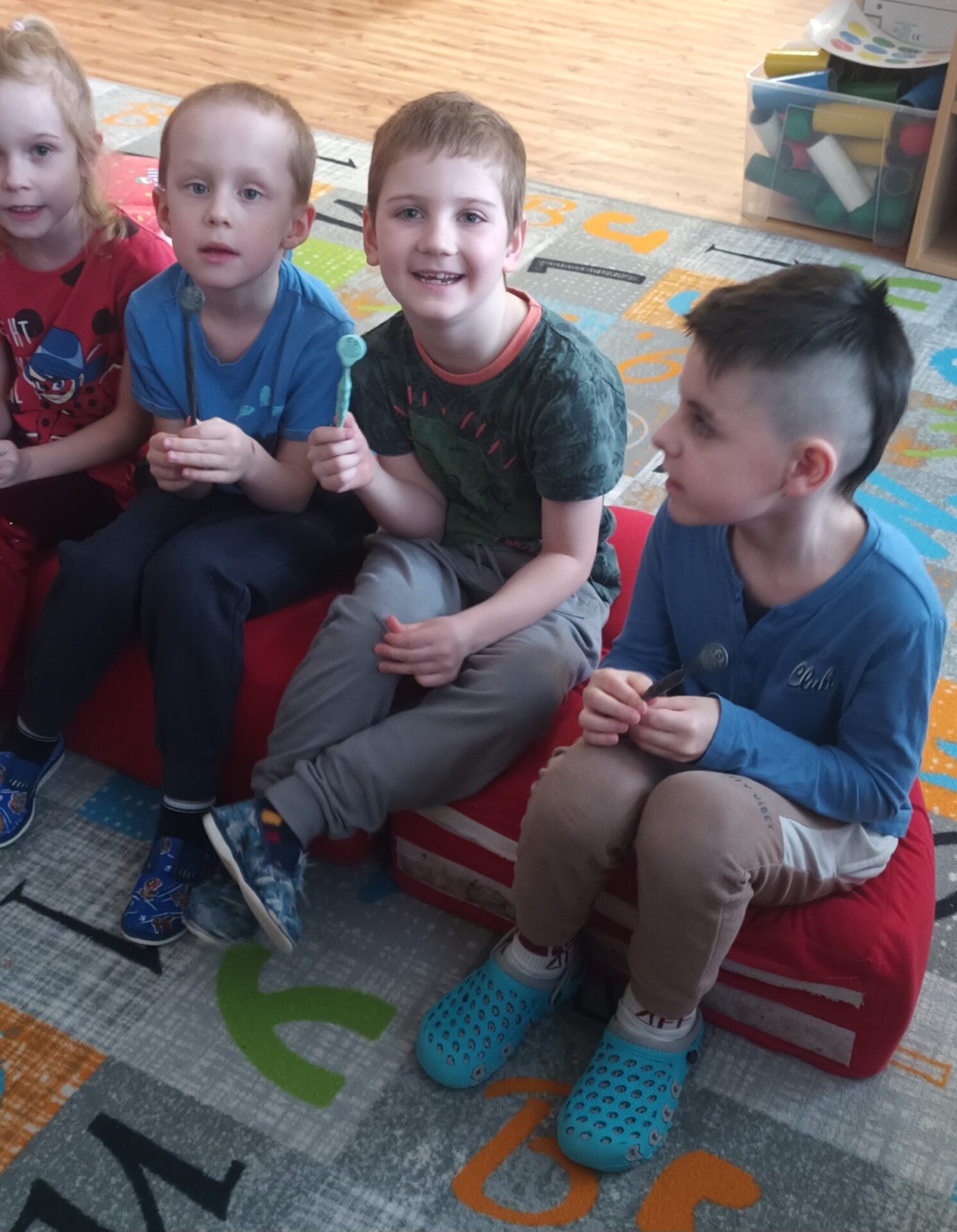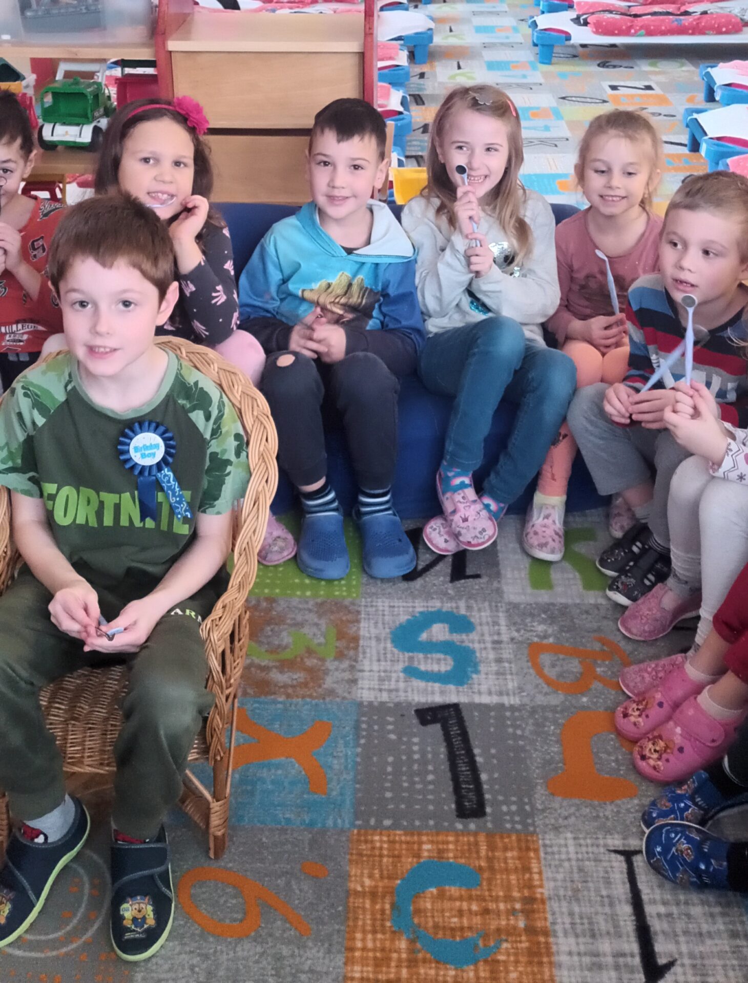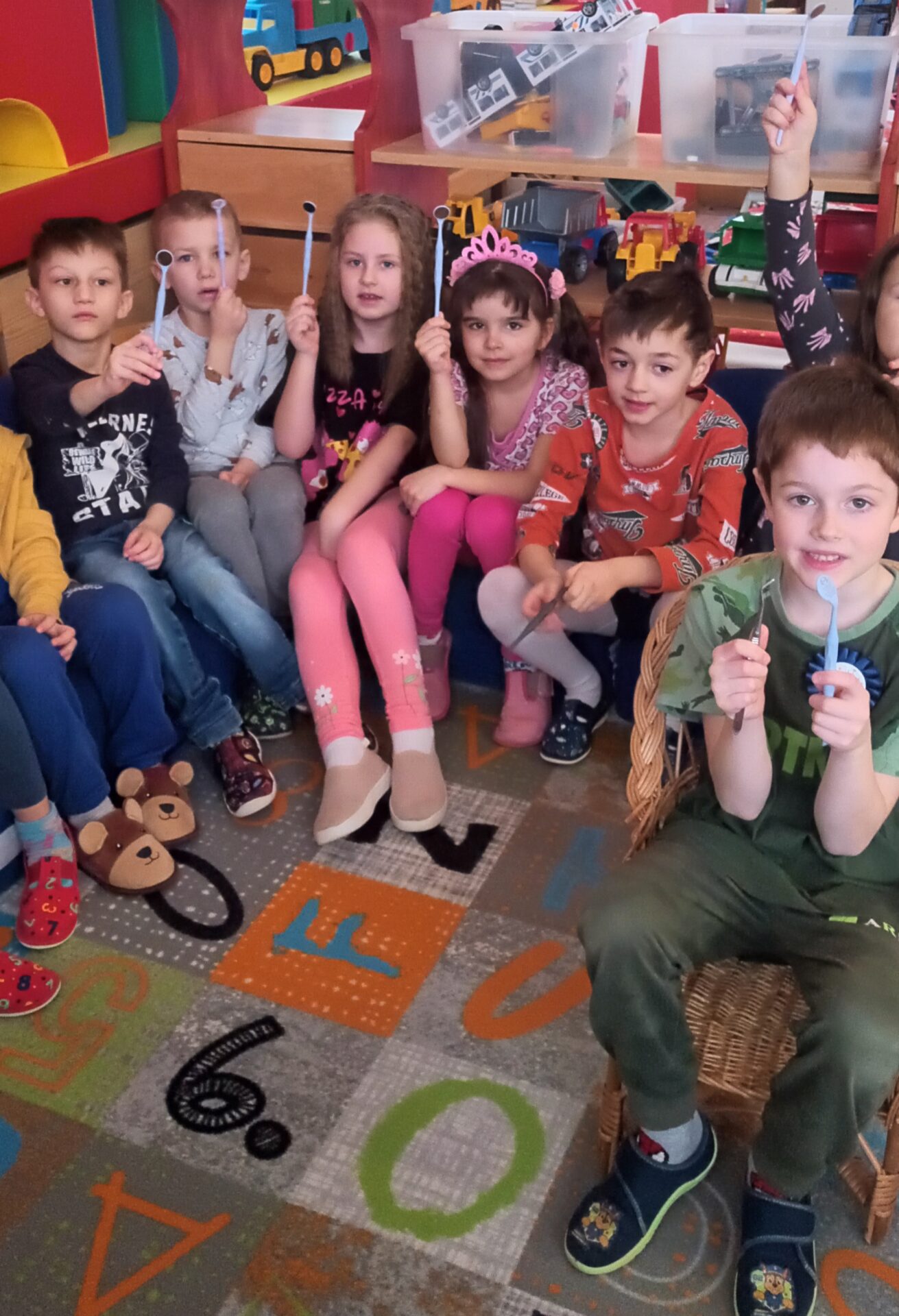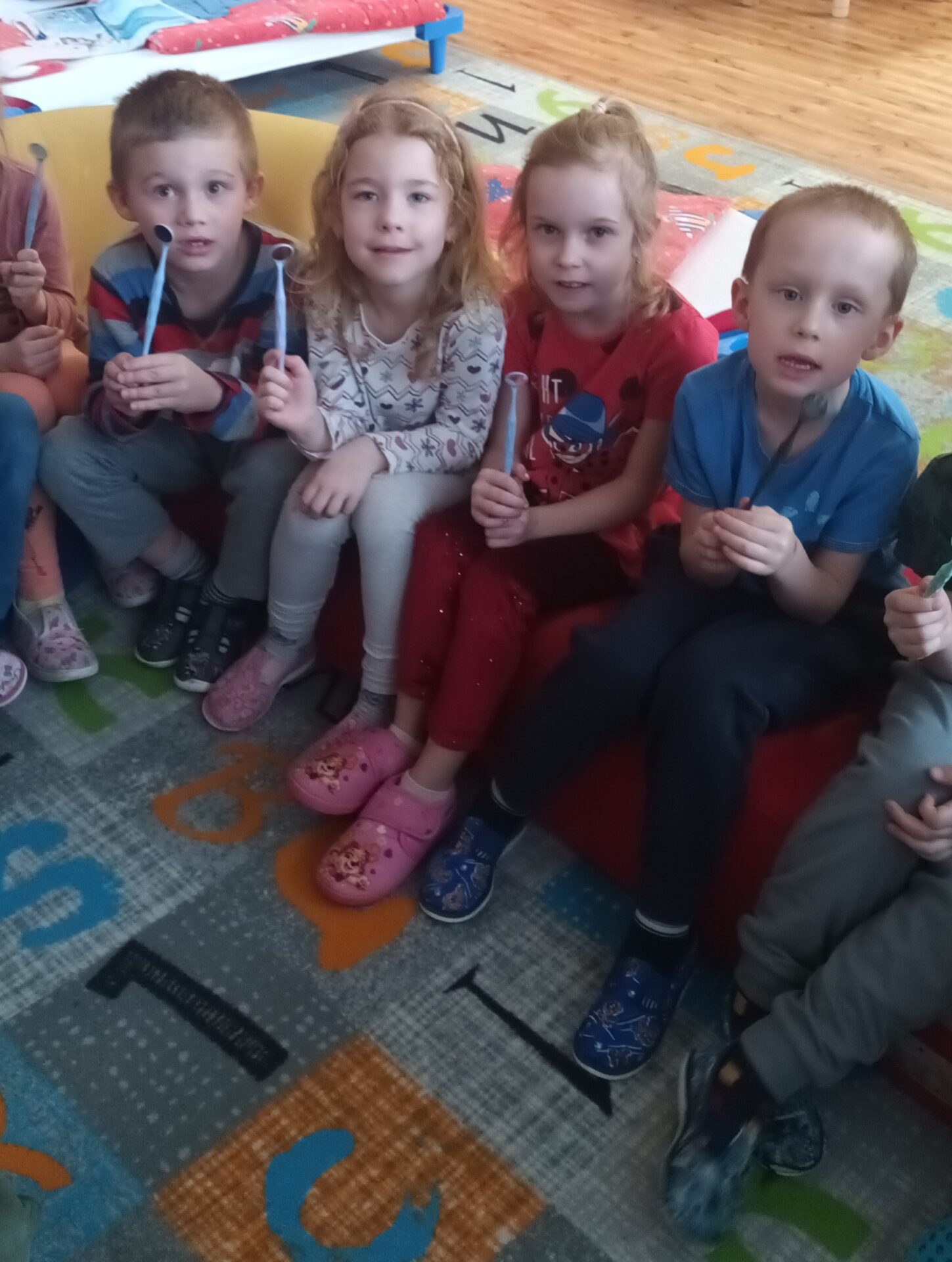 Dnes jsme navštívili zubní ordinaci, kde jsme si mohli v klidu a hlavně beze strachu vše prohlédnout, (někteří se přesto tvářili, jako by jim pan zubař měl vytrhnout všechny zuby). Odvážlivci si sedli do zubařského křesla a sestřička je povozila nahoru a dolů. Nakonec všichni dostali pravé zubařské zrcátko. Teď už děti vědí, že když si budou pravidelně a pečlivě čistit zoubky, nemusí se bát chodit k zubaři, který jen preventivně zoubky prohlédne.